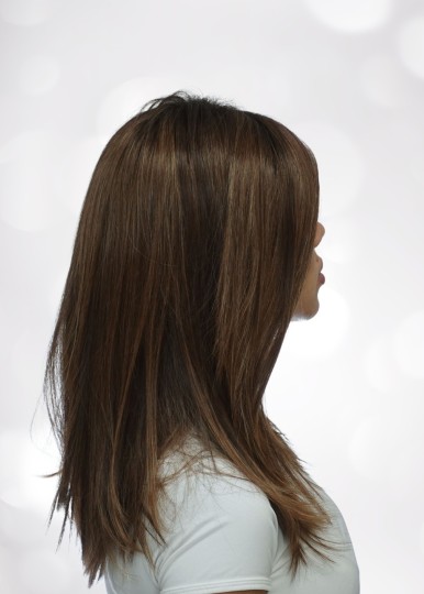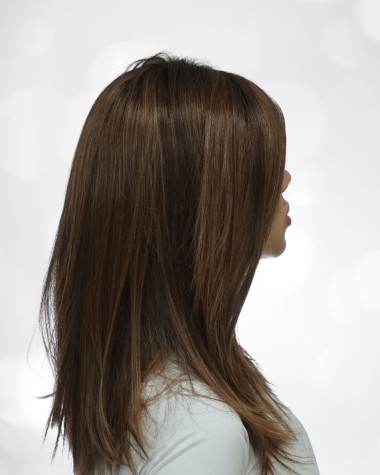 Model Bigbeat to peruka z włosów syntetycznych o podwyższonej odporności na ciepło utkanych na bazie, którą charakteryzuje wykonanie maszynowe na tresach, mikroskóra na linii przedziałka oraz linia rozmyta z przodu. Specjalne włókno syntetyczne doskonale imituje prawdziwe włosy.