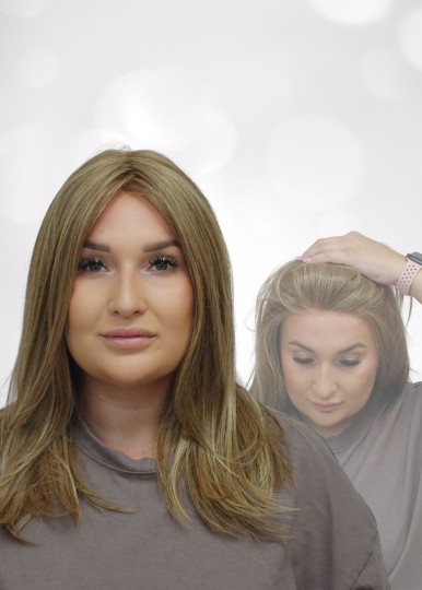 - wrażenie, że na linii czoła włosy wyrastają z prawdziwej skóry głowy