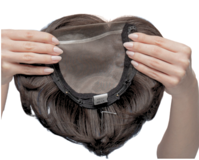 Mikroskóra pozwala na naturalny prześwit skóry na górnej części głowy. Rozmyta przednia linia włosów nadaje naturalny wygląd. Umożliwia ułożenie fryzury bez grzywki lub zaczesanie włosów do góry. Cienki silikonowy pasek na wewnętrznej stronie bazy ma stabilizować topper w trakcie noszenia.