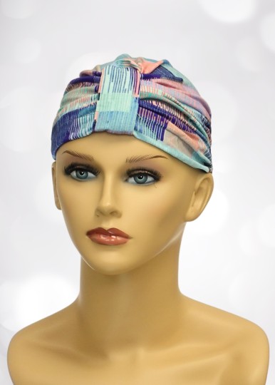 Turban LIBRA, kolor: wzorzysty TURKUSOWO-FIOLETOWY