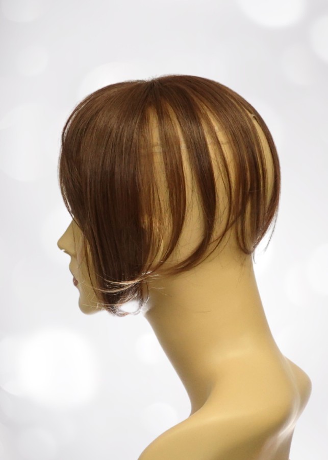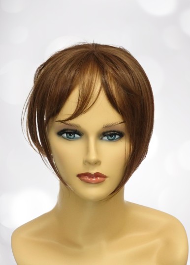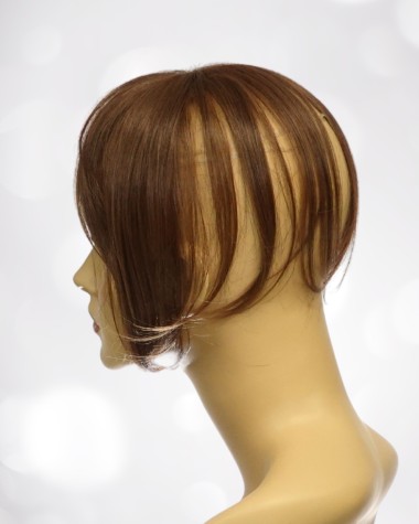Topper z grzywką MAGIC VIDAL z firmy Gisela Mayer, mała baza, idealna do delikatnego zagęszczenia włosów. Topper posiada gumkę stabilizującą, którą się zaczepia o tył głowy.