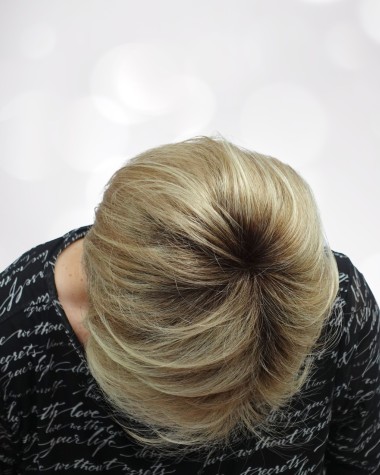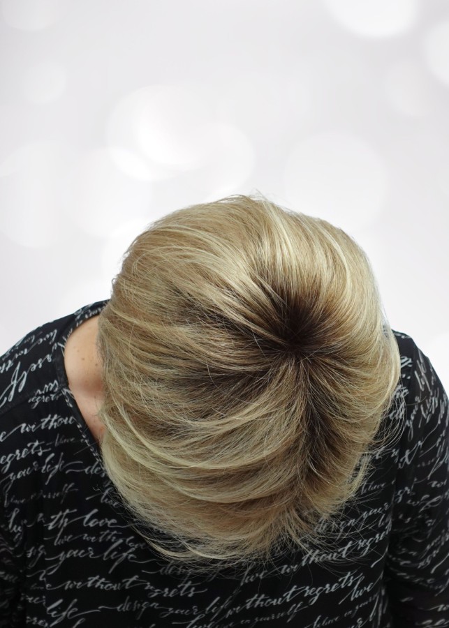 - naturalny prześwit skóry na górze głowy