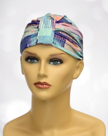 LIBRA Turban wzorzysty TURKUSOWO-FIOLETOWY